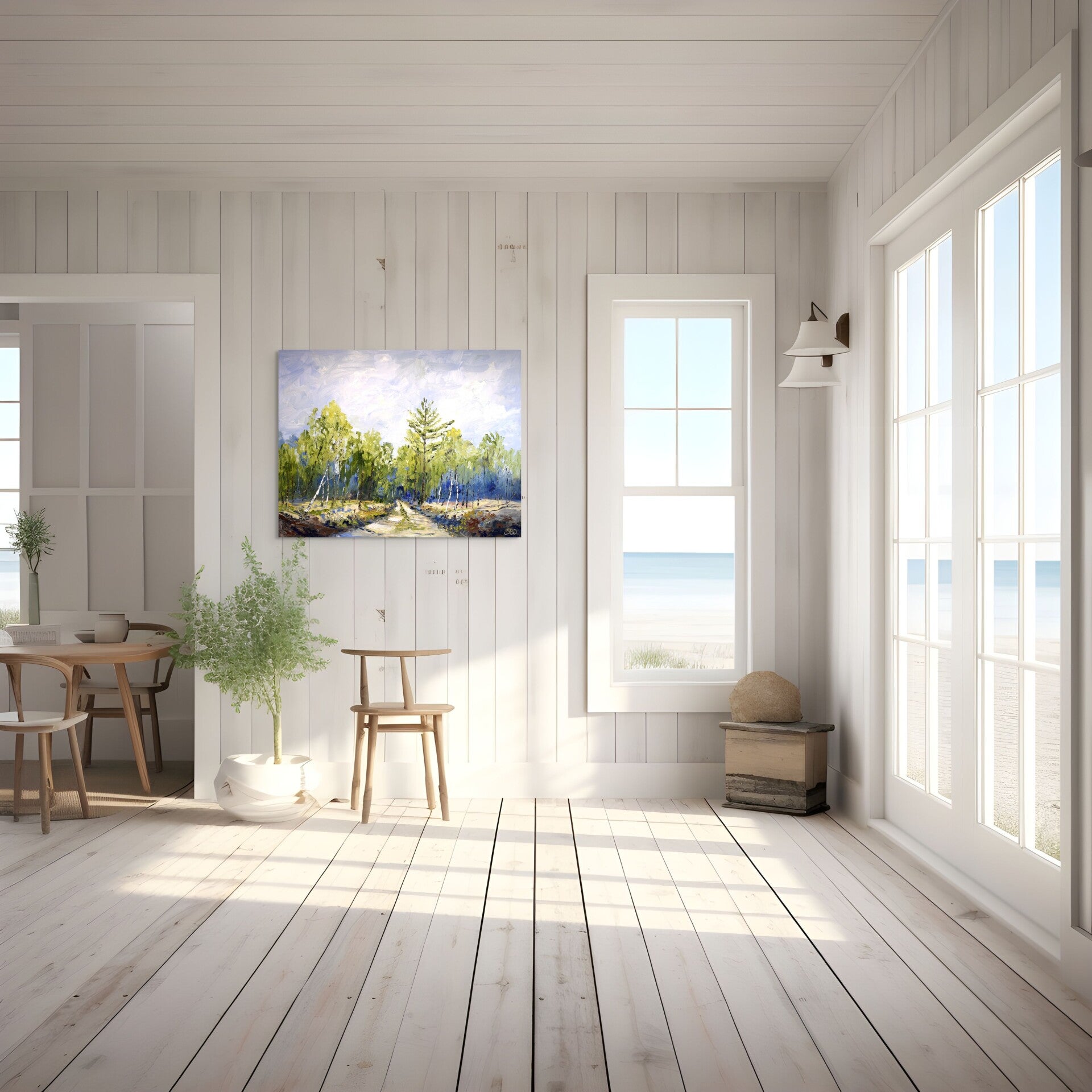 I chose this location because of the beautiful light and the idyllic path that runs there. While I painted, it was completely silent, except for the company of countless birds that accompanied my work. It was a moment of peace and beauty, captured on canvas.